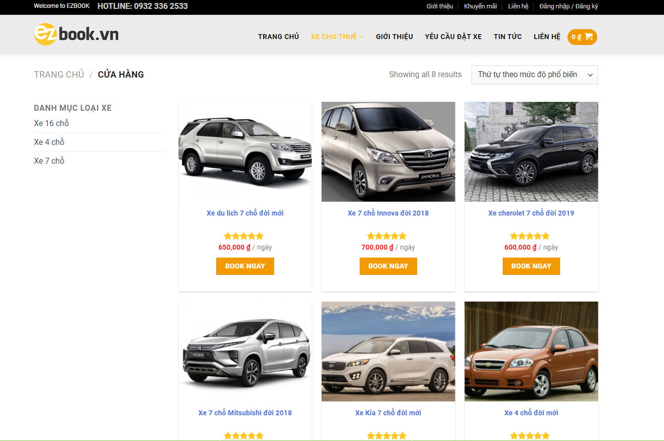 TÍNH NĂNG NỔI BẬT CỦA Theme wordpress dịch vụ cho thuê xe 01